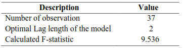 F statistics 9.536 is higher than the Pesaran, Shin, and Smith (2001) and Narayan