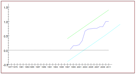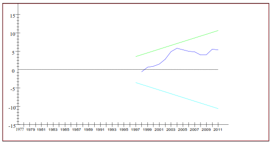 Fig 5. Plot of the cumulative sum of recursive residuals