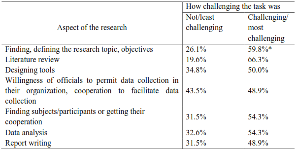 Table 2 Academic challenges experienced during research work