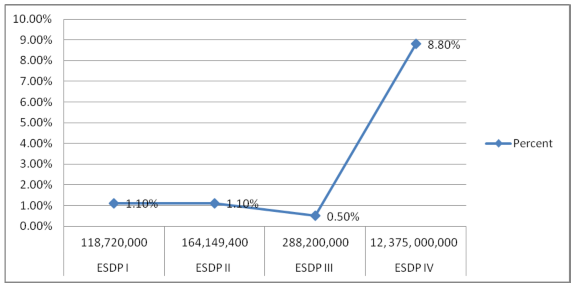 As can be seen from the table, there are irregularities in the budget allocation for adult literacy. In ESDP I, where no adequate information was provided about the nature of the program, 1.1% of the education budget was allocated for the program. In ESDP II, though the amount of money was increased, its share remained the same with ESDP I. During ESDP III, as the share of education has increased, it was expected the share of adult literacy would also increase, however, it fell by more than half of what was allotted during ESDP II. However, the decrease in the budget allocation may have resulted from the share of responsibility given by the Ministry of Education to communities, NGOs and civil societies. As it was clearly put in ESDP III, “the Government alone cannot carryout[sic] such programs without the active involvement, ownership and commitment of communities, NGOs and civil societies” (MoE, 2005, p.34). In the fourth ESDP, a high amount of money was allotted on IFAL where the program shared 8.8% of the total education budget which could be attributed to the government exerting effort towards meeting the 4th EFA goal of reducing adult literacy by half by 2015. In fact, it was made clear in the National Adult Education Strategy that in addition to support sought from other sources; budget allocated for adult education will increase at the federal, regional, zone and woreda levels (MoE, 2008).
