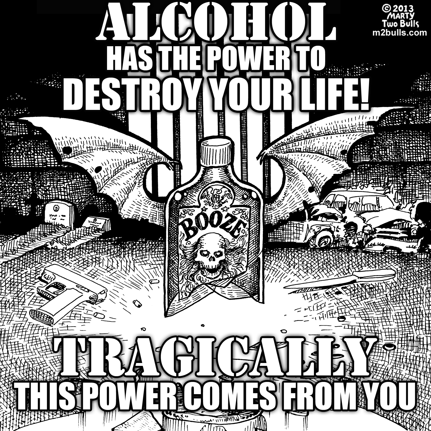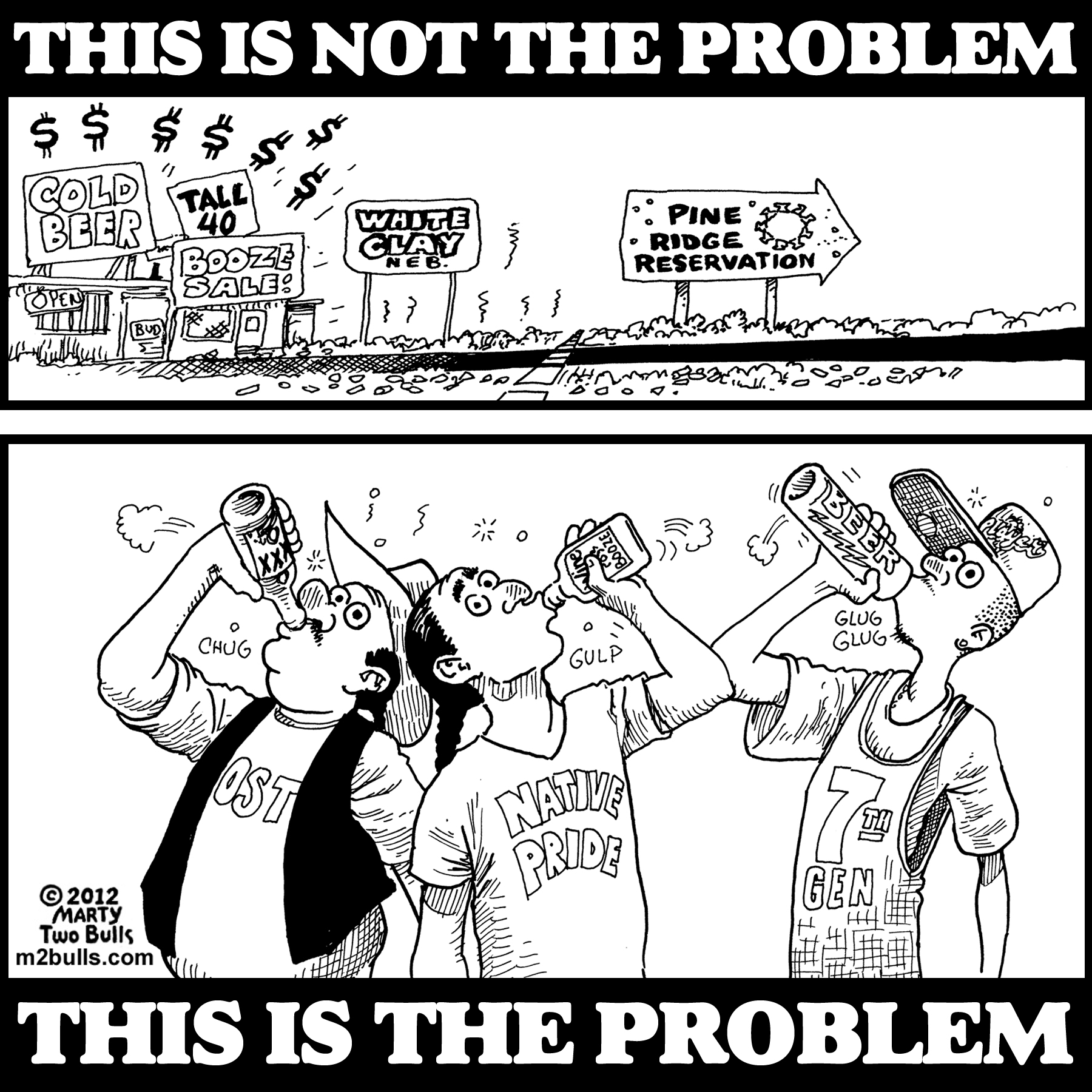 [Figures 1 and 2: A different view of who is to blame for the alcohol related tragedies. Source: Copyright by Marty Two Bulls]
