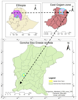 Figure 1. The location of the study area in relation to Goncha Siso Enesie Woreda