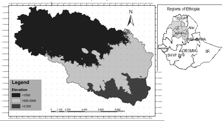 The study was conducted in the Mezewan Watershed situated in the Lake Tana basin about 65 kms from Bahir Dar, the capital city of the Amhara Region, along the road to Weji and Debretabor towns. The total area of the catchment is about 13676.62 hectares. It is part of the Upper Blue Nile river basin and its altitude ranges from 1482 to 2200 meters above sea level (masl). Subsistence agriculture is the major means of livelihood in the area with an average farm size of about one hectare.