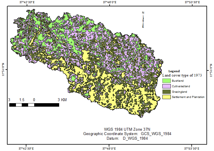 | Land use and land cover type of 1973 | Bush Lands (1) | 394.37 | 11.53 | 966.9 | 415.24 | 1788.04 |