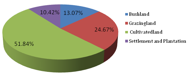 | Land use and cover type | Bush lands | Grass lands | Cultivated lands | Settlement and Plantation |