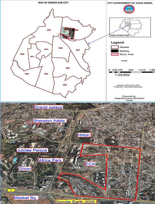 City centre redevelopment is one of the salient features of urban transformation in Addis. The Casa Inchis I (ECA) redevelopment was the first city-centre redevelopment intervention sanctioned by the city government during the mayoralty of Arkebe Ekubay (2001-2005). It was part of the overall development plan of the city from 2002 to 2010. The site of the intervention is located in Kirkos Sub-city, present wereda 08 and 01(see figure 4). It is surrounded by Tito, Jomo Kenyatta, Menlik Avenue and Guinea Conakry streets in the north, south, east and west respectively. This rendered the site to occupy the eastern part of the central business district (CBD) with a walking distance from the Jubilee and Grand palaces, Meskel square, Africa park, Hilton, Ghion and Sheraton Addis hotels and the UN Economic Commission for Africa (ECA) (see Google earth map, figure 3).