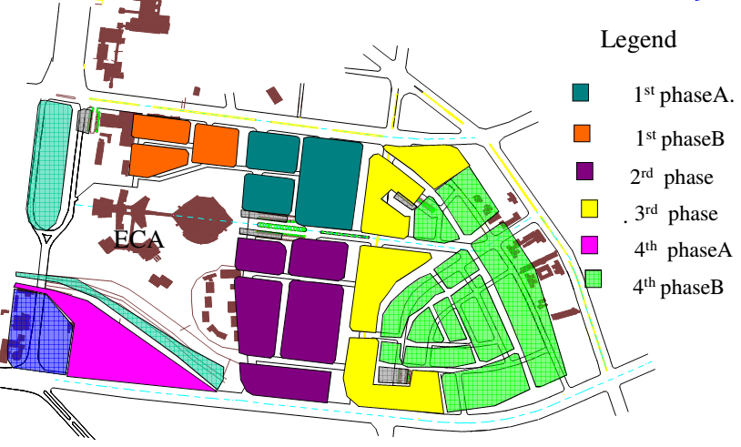 Conakry Street from the redevelopment intervention (i.e. exclusion of phase 3 and 4B). Modification has also been made in terms of road coverage where the original access road crossing right in front of the gate to ECA has been closed and converted into parking area lot with additional land brought in.