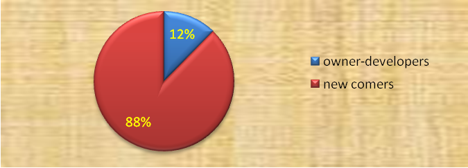 In terms of developers, 88% were new-comers and 12% owner-developers (see figure 9).