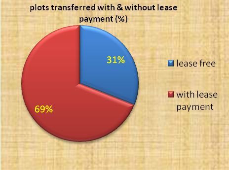 From the total land redeveloped (252,538 m2), about 126,579 m2 (50%) was available for developers. According to the data from Kirkos Sub-city land banking and transfer office, 87,385 m2 (69%) of land was transferred to developers with lease payment and the remaining 39,194 m2 (31%) under lease free agreement to eleven owner-developers, international organizations and government administrations offices. From the total land transferred to developers with lease payment, 57 plots measuring 62,364 m2 (71%) was passed through bidding/auction and the remaining 25,021 m2 (29%) through negotiation (see figure 11).
