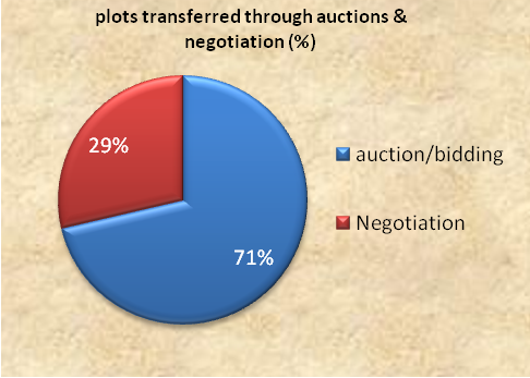 Secondly, the government had the leverage to undertake negotiation in transferring land (25,021 m2) to developers in Casa Inchis. However, the manner the negotiation was undertaken is gloomy and hence beyond legal and economic rationality. Though some negotiated plots were relatively in prime location, they fetched lower average prices (USD 472/ m2) as compared to auction price (USD 561/m2). The difference between the two (USD 89.17/m2) and the opportunity cost thereof (USD 2.2 million) raises the question as to who paid for it? In addition, whether or not negotiated plots were transferred on the basis of the law is also obscured. This is because neither binding agreements nor control mechanism have been found that show any special obligation on developers who acquired land through negotiation. Moreover, the review of land lease transaction reports, the parcel plan (LDP) and a visit to the project site depicted that there is no significant difference between land uses that are negotiated and auctioned. This observation supports Hong and Bourassa’s (2003) assertion that negotiation based land transfer may suffer from lack of transparency and pave way for administrative malpractices (corruption). This study, however has not made an assessment whether or not the limits with negotiation was due to flimsy administrative capacity.