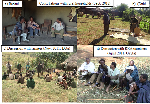 For data acquisition, well-structured questions focusing on farmers’ household demography, resource endowment, SWC technology use and perception were designed and translated into the native language (Amharic). Before gathering the data, the designed questions were pre-tested for fitness and validity. From the pre-test feedback, relevant improvements were made.The items were then filled by the sampled households during the harvest seasons of 2011 and 2012 through face-to-face interviews. Three university graduated assistants and the researcher conducted the face-to-face interviews with the support of development agents (DAs). The quantitative data generated from the structured questionnaire surveys were then enriched by FGDs, key informant interviews and participatory field observations.