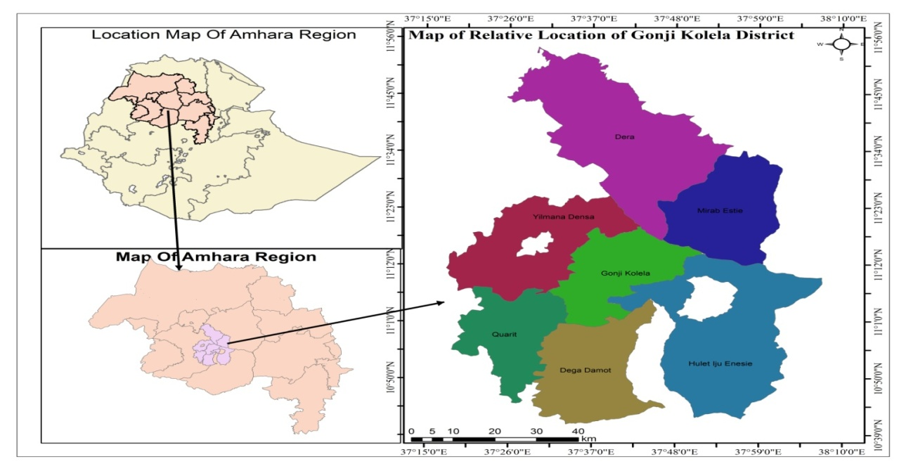 Figure 2. The relative location of Gonji Kolela district in the Amhara Region